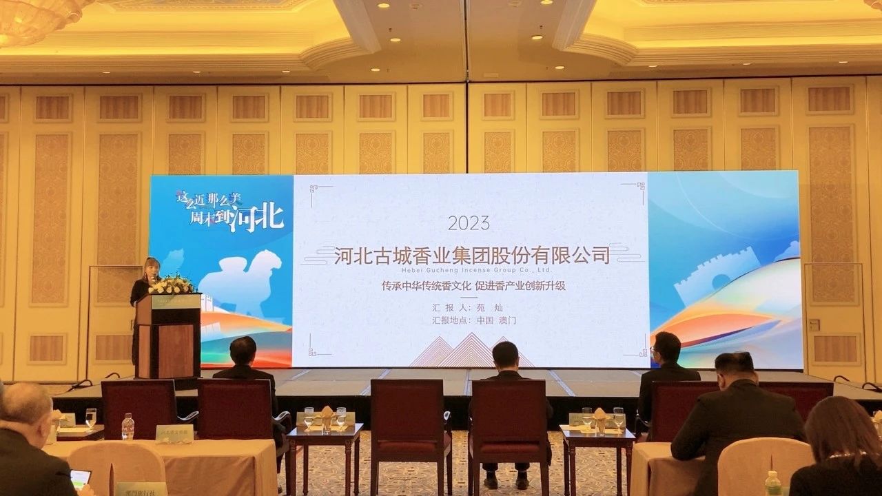 6月30日,十一屆澳門國(guó)際旅游(產(chǎn)業(yè))博覽會(huì)開幕,河北古城香業(yè)集團(tuán)股份有限公司受邀參展。此次參展產(chǎn)品有香暖博山晚安香、古典香方系列、七寶嗅迷鼻嗅器、蓮花清香、香牌、香梳等香文化產(chǎn)品。香藝師現(xiàn)場(chǎng)展示古法篆香,這項(xiàng)傳承千年的熏香藝術(shù)受到觀眾的歡迎。古城香業(yè)還參加了“這么近,那么美,周末到河北”的推介活動(dòng),介紹中國(guó)香城香文化產(chǎn)業(yè)園區(qū)項(xiàng)目,傳承中國(guó)傳統(tǒng)香文化,促進(jìn)香產(chǎn)業(yè)轉(zhuǎn)型升級(jí)。